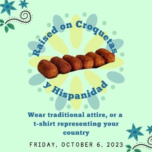 Students, we encourage you to come to school representing your roots while you enjoy croquettes!
