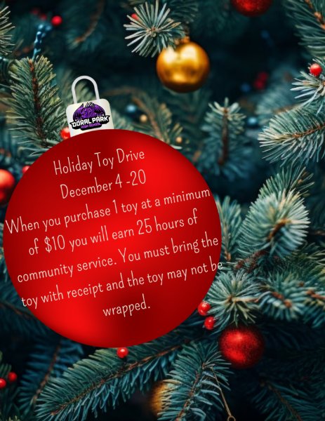 Students will be receiving community service hours for donating toys. For every $10 toy donated the student will earn 25 hours of community service. Please bring the receipt for proof of purchase. This is a great opportunity to give back to the community & meet graduation requirements!
