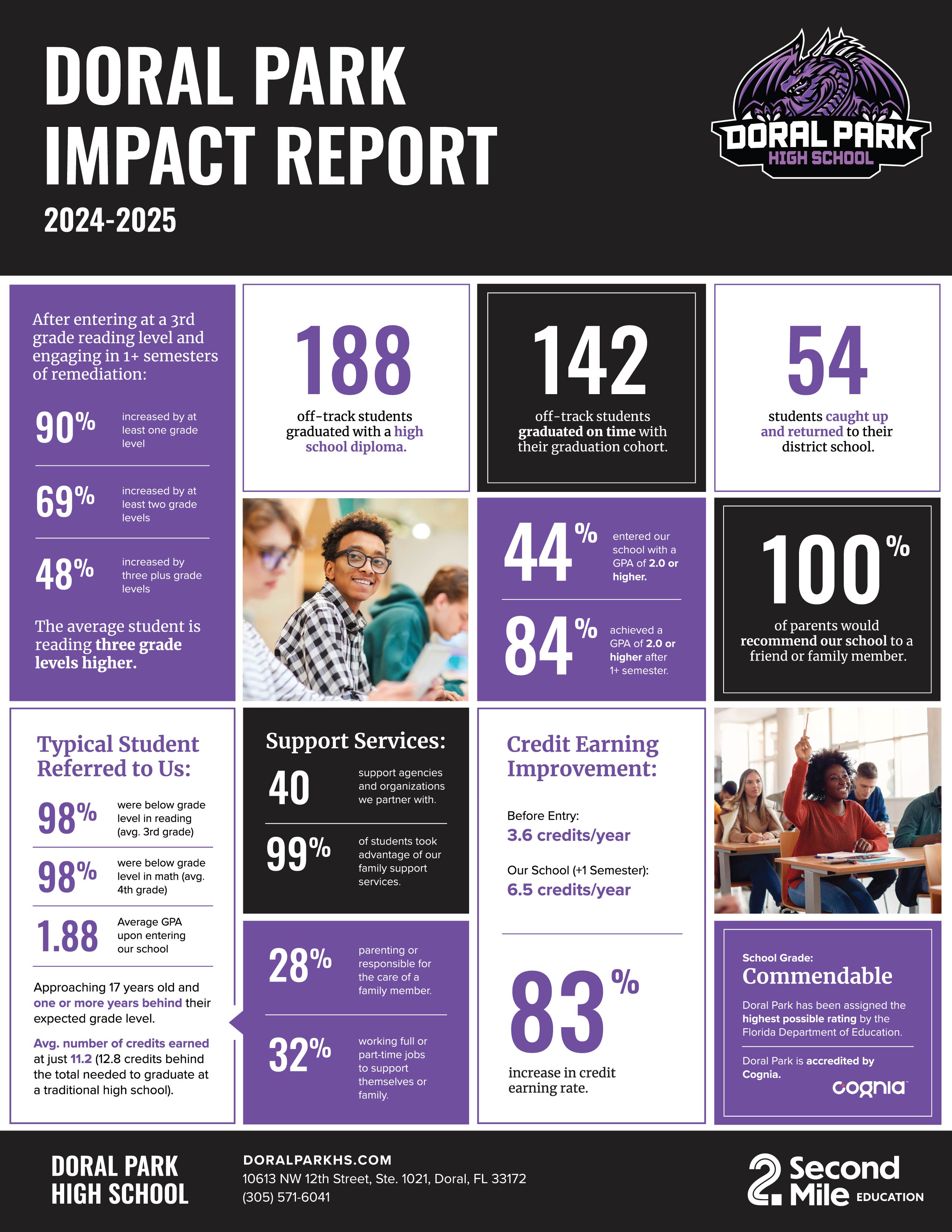Doral Park High School has been assigned a SIR Rating of "Commendable." Read more about Florida School Accountability at the Florida Department of Education Website. Accountability Data and link: DORAL PARK HIGH SCHOOL REPORT CARD Student Success: We invite you to listen to our Student Success Stories directly from the source - our students themselves! Each of these students individual success helps make up some pretty remarkable results.